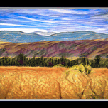 This impressionist rending of the hills shows a small section of The Cowboy trail of western Alberta. This section runs below and beyond "Head Smashed...[+]