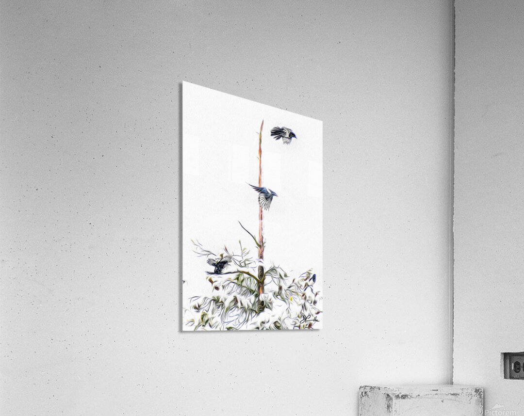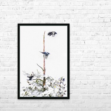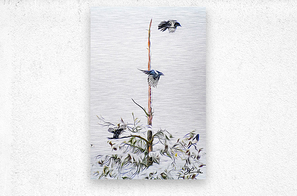 The third and last of a trio of images chronicling the apparent meeting of a group of magpies congregating on a dying tree in the middle of a winter blizzard. The trio of images make for a wonderful wall grouping.
