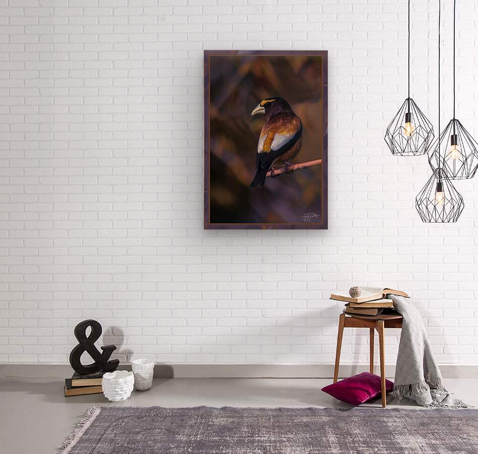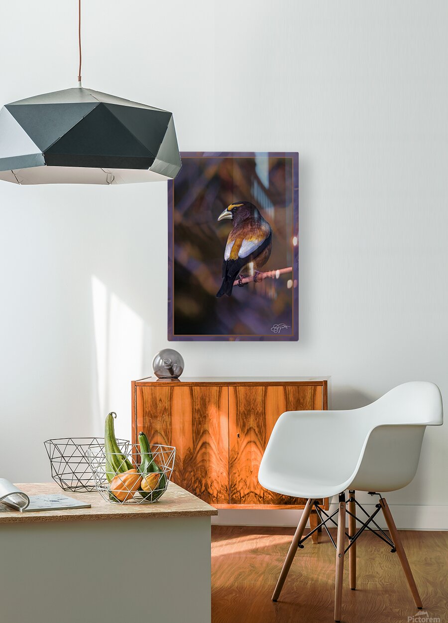 EVENING GROSBEAK PONDERING Picture Frame Printing
