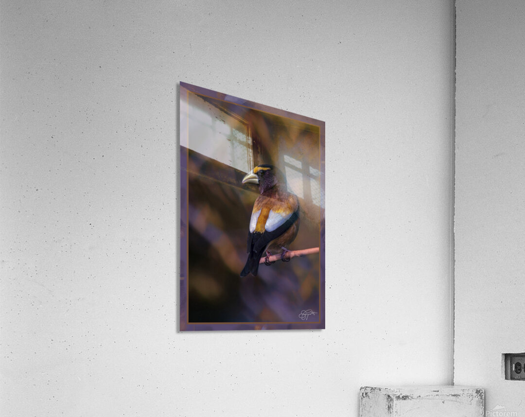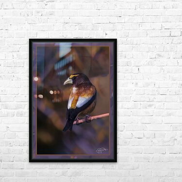 Get this artwork "EVENING GROSBEAK PONDERING" in a framed print.