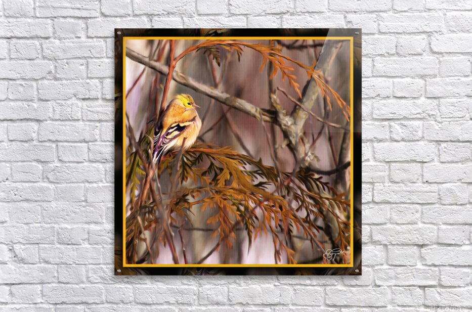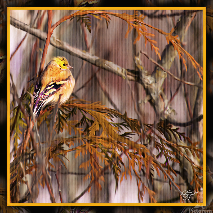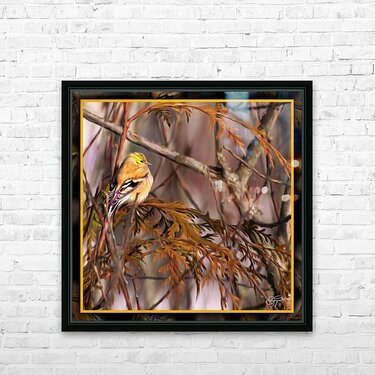 Get this artwork "GOLD FINCH CONTEMPLATION" in a framed print.