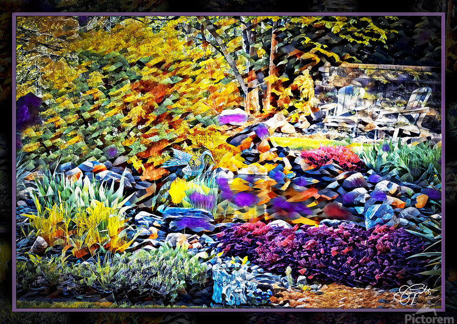 BLUE HERON IN A FANCIFUL GARDEN by Jerre Paquette [+]