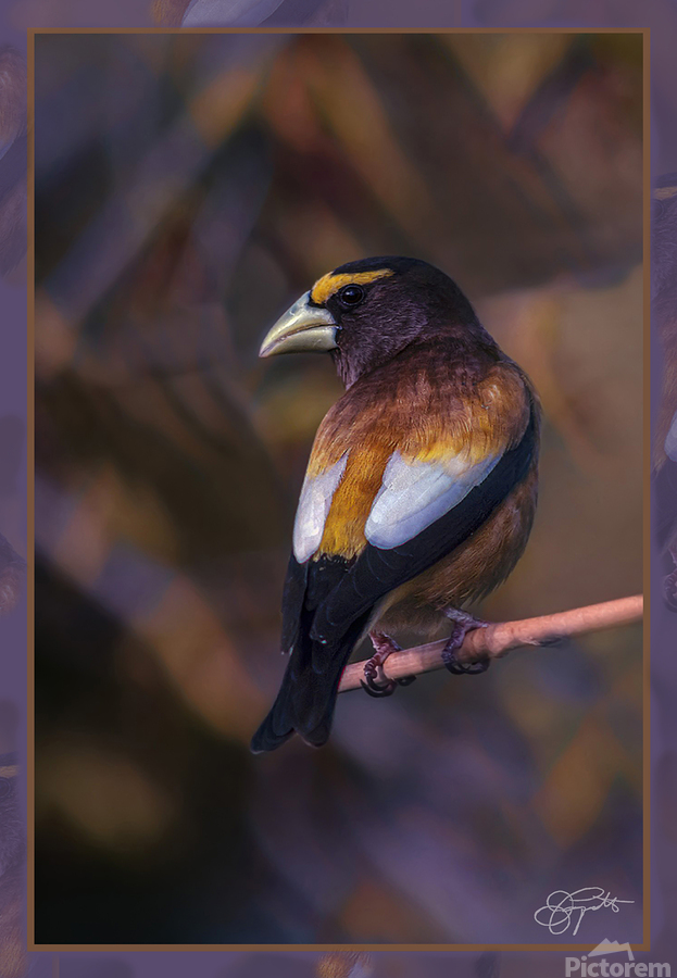 EVENING GROSBEAK PONDERING by Jerre Paquette [+]